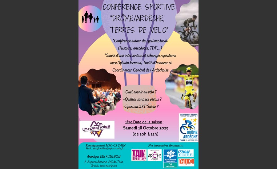 Conférence autour du cyclisme local, suivie d'une intervention et d'un échange-questions avec Sylvain Renaud, invité d'honneur et coordinateur général de l'Ardéchoise. Animé par Elie Avignon